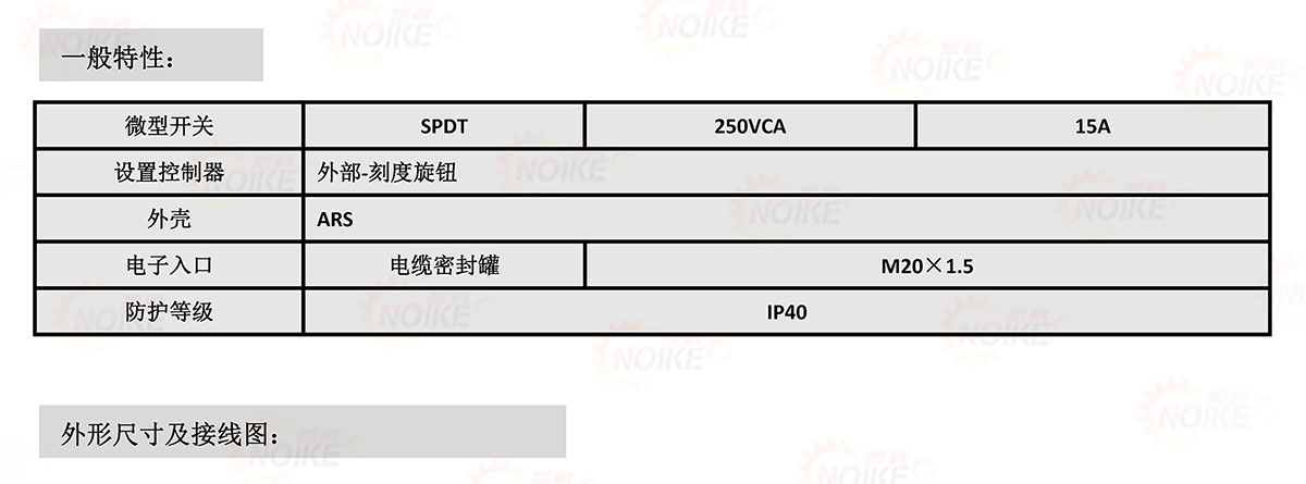 高精度,简洁的设计,低滞后性,容易安装。应用:NC10系列温度开关可满足液压,润滑,传动系通中对于温度控制的不同要求,用于检测温度是否超过最高限或最低限。