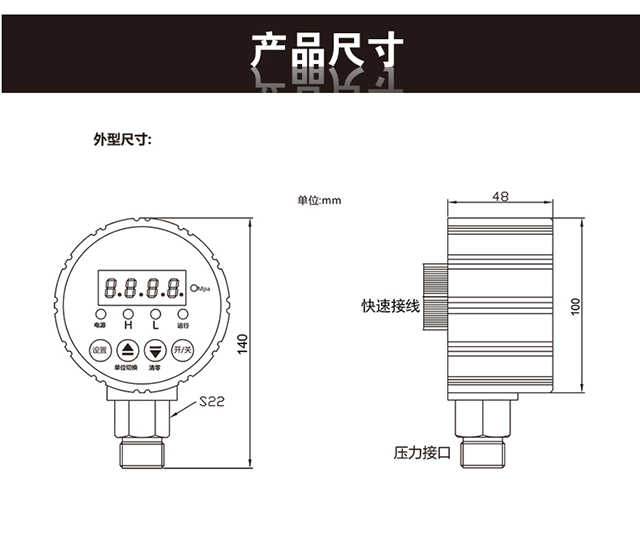 智能压力开关(控制器)是集压力测量,显示,输出控制于一体的智能数显压力测控产品该产品为全电子结构,前端采用带隔离膜充油压阻