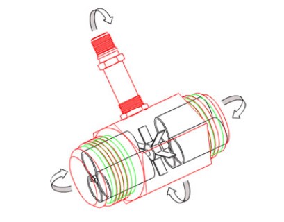 涡轮流量计由几乎无摩擦的转子组成,该转子沿流量计管的轴线枢转,并设计成使得转子的旋转速率与通过流量计的流体流量成比例。借助于安装在仪表壳体外部的分接线圈来感测该转速。