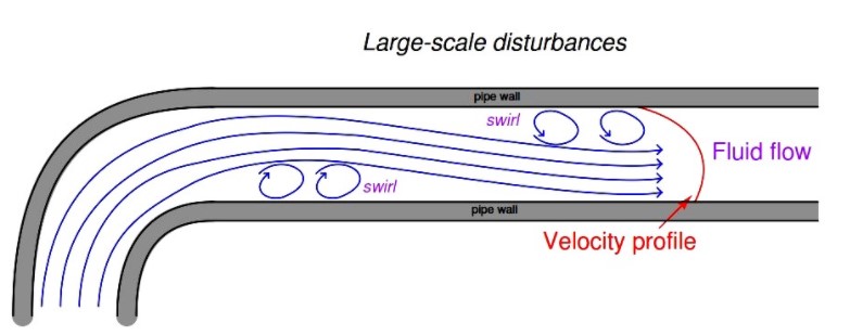 管道网络的急转弯将大湍流引入到流量中。