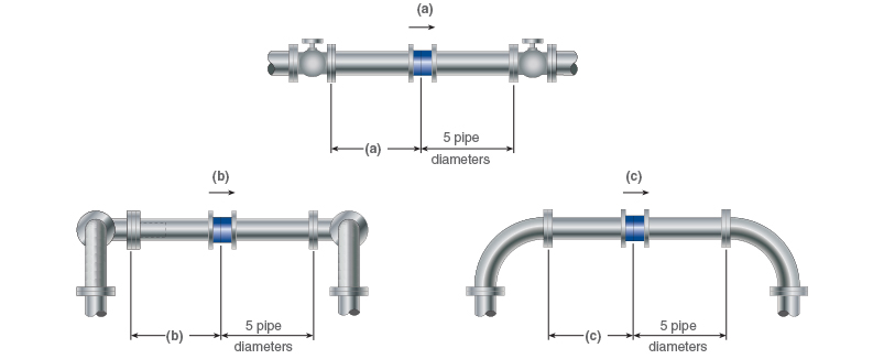 管道-孔板下游必须有至少五个直管直径,以减少由管道引起的干扰的影响。