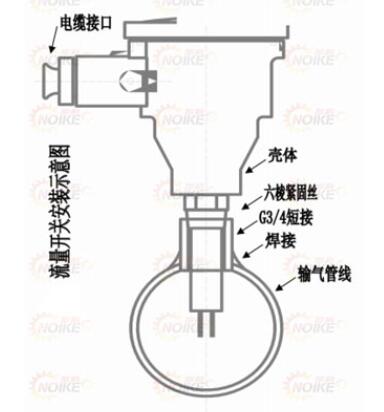 在所用管线上选取一直管段,直线管段长度amp;ge;5(D为直管段直径)在直管段中部开一30孔,把附带的短接焊在孔上,然后把流量开关旋在短接上(在管壁上套与流量开关配套的管纹连接。