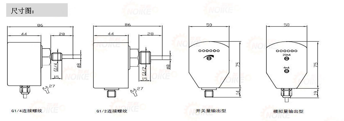 Δ信号输出: PNP、NPN继电器模拟量(4..20mA)