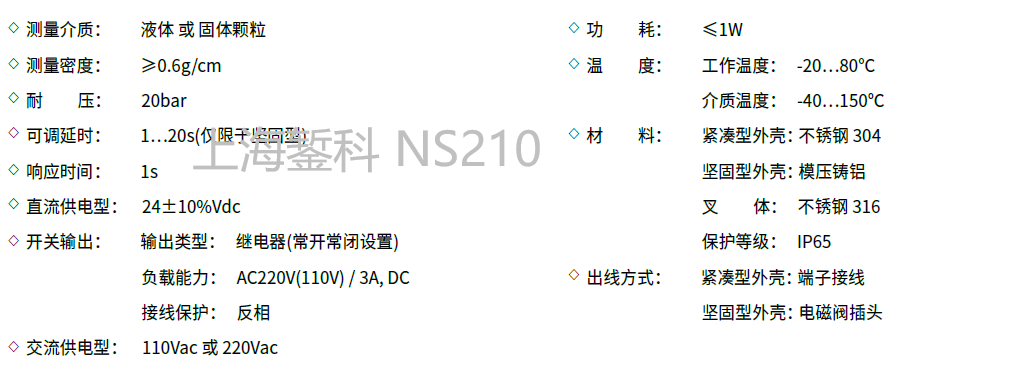 好了,今天的我们的这个电子式音叉液位开关NS210系列产工作原理,应用领域,特性,安装要求,使用和维护就到这里而技术了,还有问题的话, 我们欢迎您随时联系咨询我们,我们收到后会尽快回复您的。