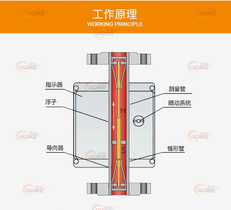 当流体自下而上流过垂直锥形管时,转子受到两个力的作用,一是垂直向上的推动力,它等于流体流经转了与锥形管间的环形面所产生的压力差;另是垂直向下的净重力,它等于转子所受重力減去流体对转子的浮。当流量加大使压力差大于转子净重カ时转子就上升。当压力差与转子的净重力相等时转子处于平衡状态,即停留在一定位置上在金属管外表面上刻有读数,根据转子的停留位置,即读出被流体的流量。