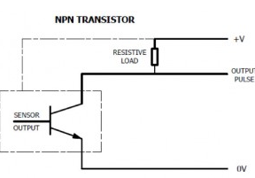 a。 NPN。集电极开路NPN输出的配置类似于将流量计转换为0V电源的开关。它需要一个”上拉”电阻至正电压。然后说该晶体管在激活时会从外部电阻器”吸收”电流回到0V。优点是该电压可能不一定是如下所示的传感器电源电压,而是可以选择(在指定的限制范围内)以适合仪表网络的其余部分,例如: 24伏特电压,可以更安全地传输更长的距离。电阻的确切值并不严格,但必须选择足够大的电阻以限制所选电压下的电流(在指定极限内),但又要足够小以提供足够的电流来激活开关。典型的上拉电阻值在1K至50kOhm之间。